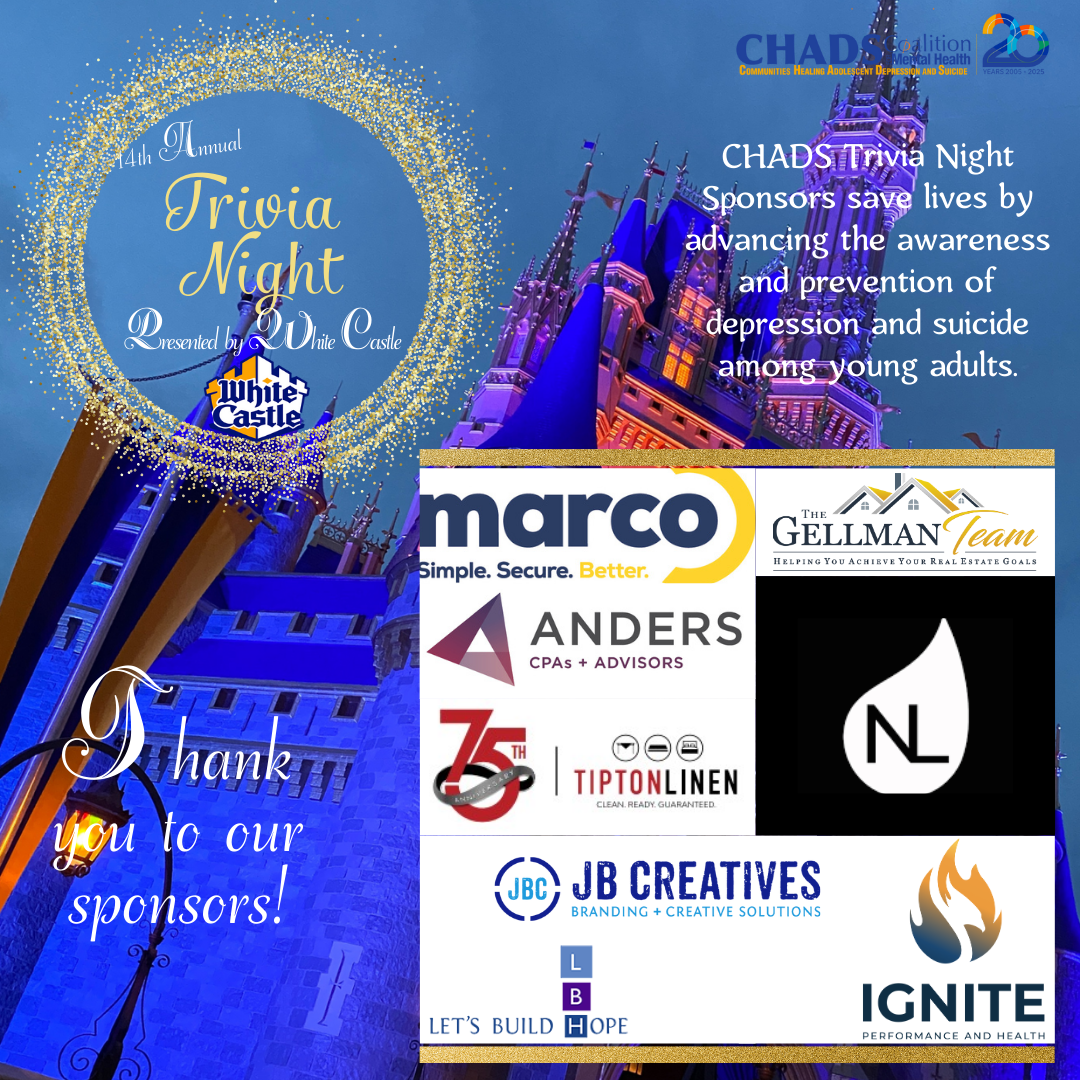 View our Calendar of Events to get involved with CHADS Trivia Nights, Annual Brighter Days Gala, and mental health awareness events. Your support provides a valuable network of counselors and Resources for teens in need.